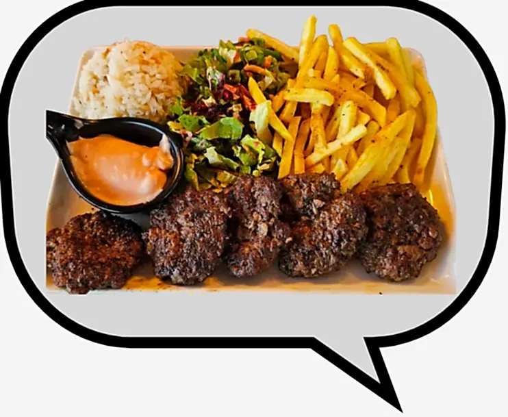 Özel baharatlarla yoğrulmuş kasap köfte.Marinated Ground Beef Grilled On Charcoal Cooking Served With Rice, Salad, Potatoes and Special Sauce.Mariniertes Rinderhackfleisch auf Holzkohle gegrillt, serviert mit Reis, Salat, Kartoffeln und Spezialsoße.Bœuf haché mariné grillé au charbon de bois, servi avec riz, salade, pommes de terre et sauce spéciale.Маринованный говяжий фарш на углях, подается с рисом, салатом, картофелем и специальным соусом.لحم بقر مفروم متبل مشوي على الفحم يقدم مع الأرز والسلطة والبطاطس وصلصة خاصة.炭烤腌制牛肉末,配米饭、沙拉、土豆和特制酱汁。炭火焼きのマリネビーフひき肉、ライス、サラダ、ポテト、特製ソース添え。