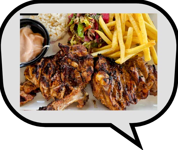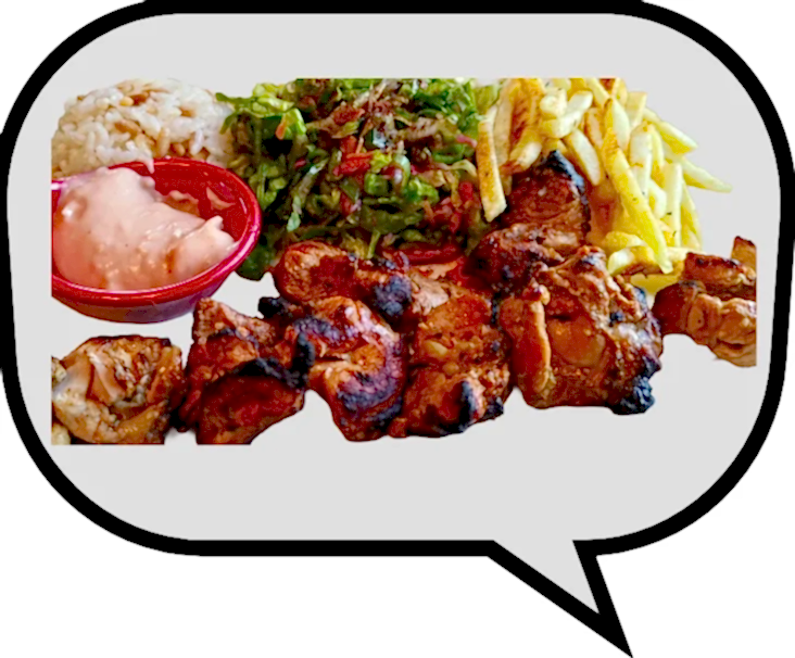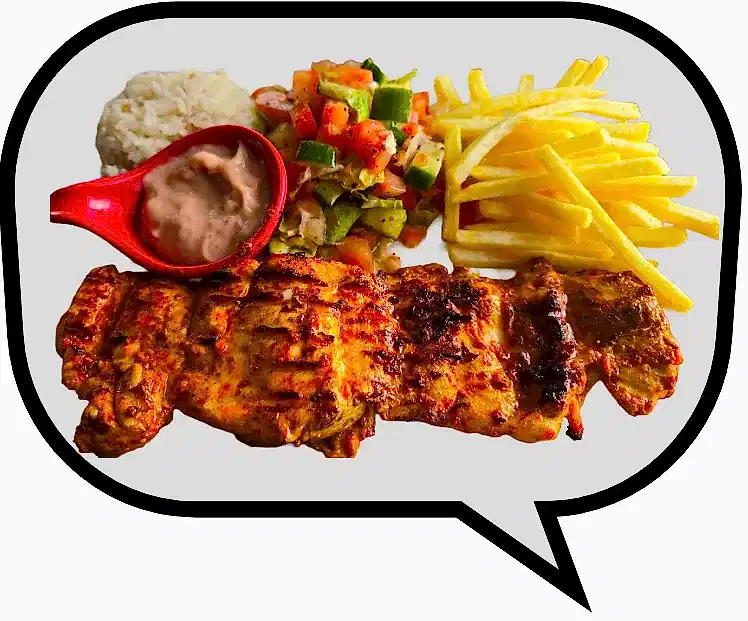 Marine edilmiş tavuk pirzola.Marinated Chicken Chops Grilled On Charcoal Served With Rice, Salad, Potatoes and Special Sauce.Marinierte Hähnchenkoteletts auf Holzkohle gegrillt, serviert mit Reis, Salat, Kartoffeln und Spezialsoße.Côtelettes de poulet marinées grillées au charbon de bois, servies avec riz, salade, pommes de terre et sauce spéciale.Маринованные куриные отбивные на углях, подаются с рисом, салатом, картофелем и специальным соусом.قطع دجاج متبلة مشوية على الفحم تقدم مع الأرز والسلطة والبطاطس وصلصة خاصة.炭烤腌制鸡排,配米饭、沙拉、土豆和特制酱汁。炭火焼きのマリネチキンチョップ、ライス、サラダ、ポテト、特製ソース添え。